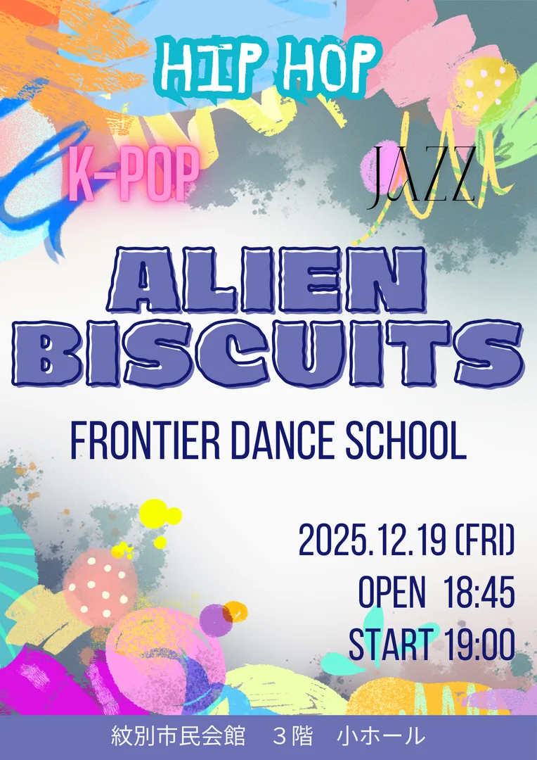 このイベントは終了しましたALIEN BISCUITS音楽紋別市開催日2025-12-19時間19:00会場紋別市民会館 3階 小ホールボランティア募集募集なし参加費入場無料イベント詳細FRONTIER DANCE SCHOOLに所属するメンバーのダンスイベントです。ジャンルはHIP HOP、K-POP、JAZZなど様々!どなたでもお気軽にお越しください!その他・特記事項特にありません