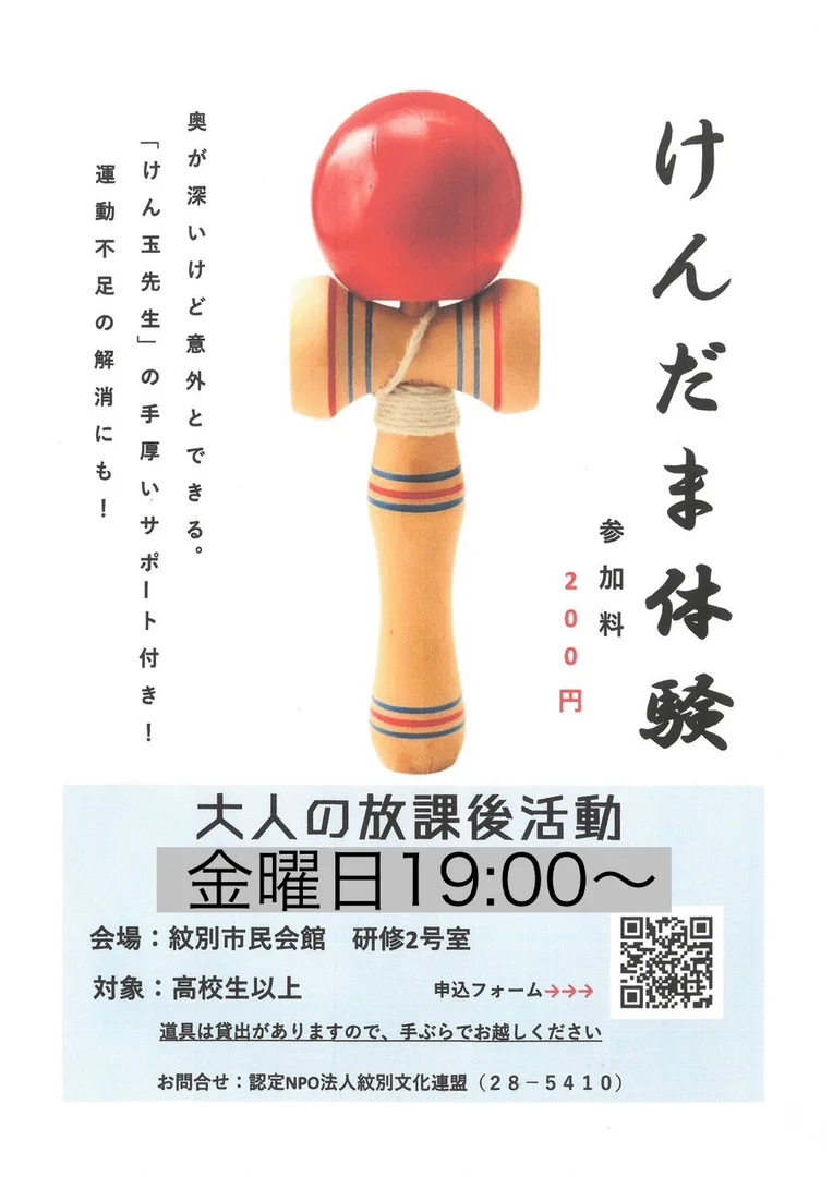 けん玉教室文化紋別市開催日2026-03-06時間19:00 - 21:00会場紋別市民公民館ボランティア募集募集なし参加費200円#大人の放課後活動#紋別イベント#紋別市民会館#オホーツクイベント#北海道イベント#運動不足解消#けん玉チャレンジ#けん玉好きと繋がりたい#和のあそび#日本の伝統遊びシェアイベント詳細けん玉教室を行います!やり方を知ると奥が深いけん玉をやってみませんか?参加お待ちしております!その他・特記事項けん玉の貸し出しもしています!会場マップGoogleマップで開く