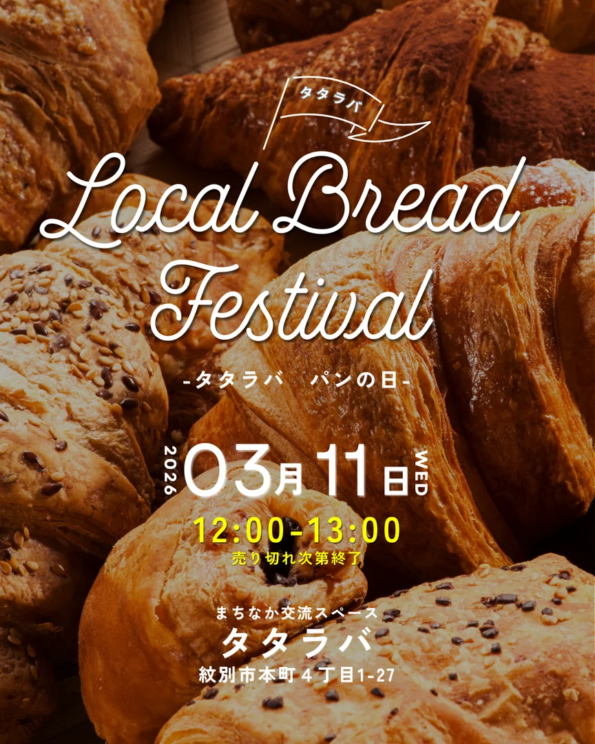 紋別のまちなか交流スペース「タタラバ」で、 「パンの日」 を今月も開催します🍞✨ 地域のパンが一堂に集まるこの日は、 焼きたてのおいしいパンとの出会いが待っています! いつもとちょっと違うランチタイムを楽しみたい方、 パンが好きな方、 タタラバが気になっていた方、 みなさんぜひ足を運んでみてください😊 数に限りがありますので、 気になる方はお早めにどうぞ!
